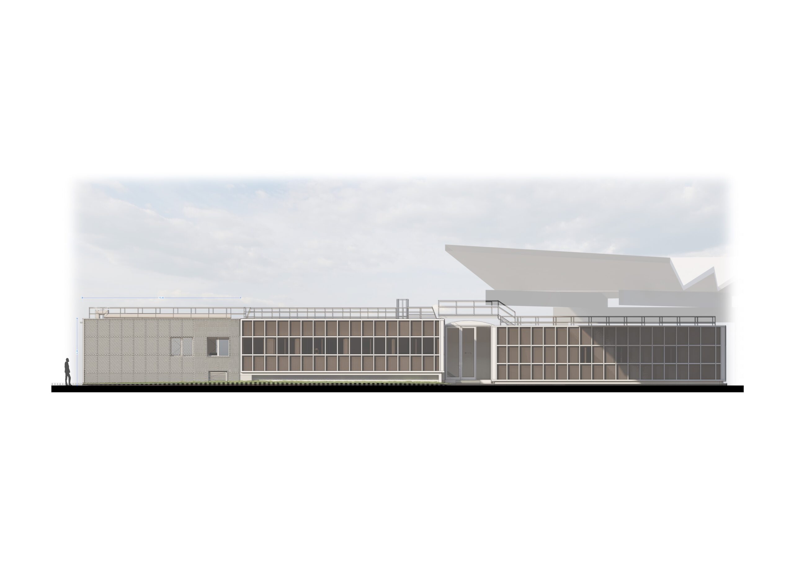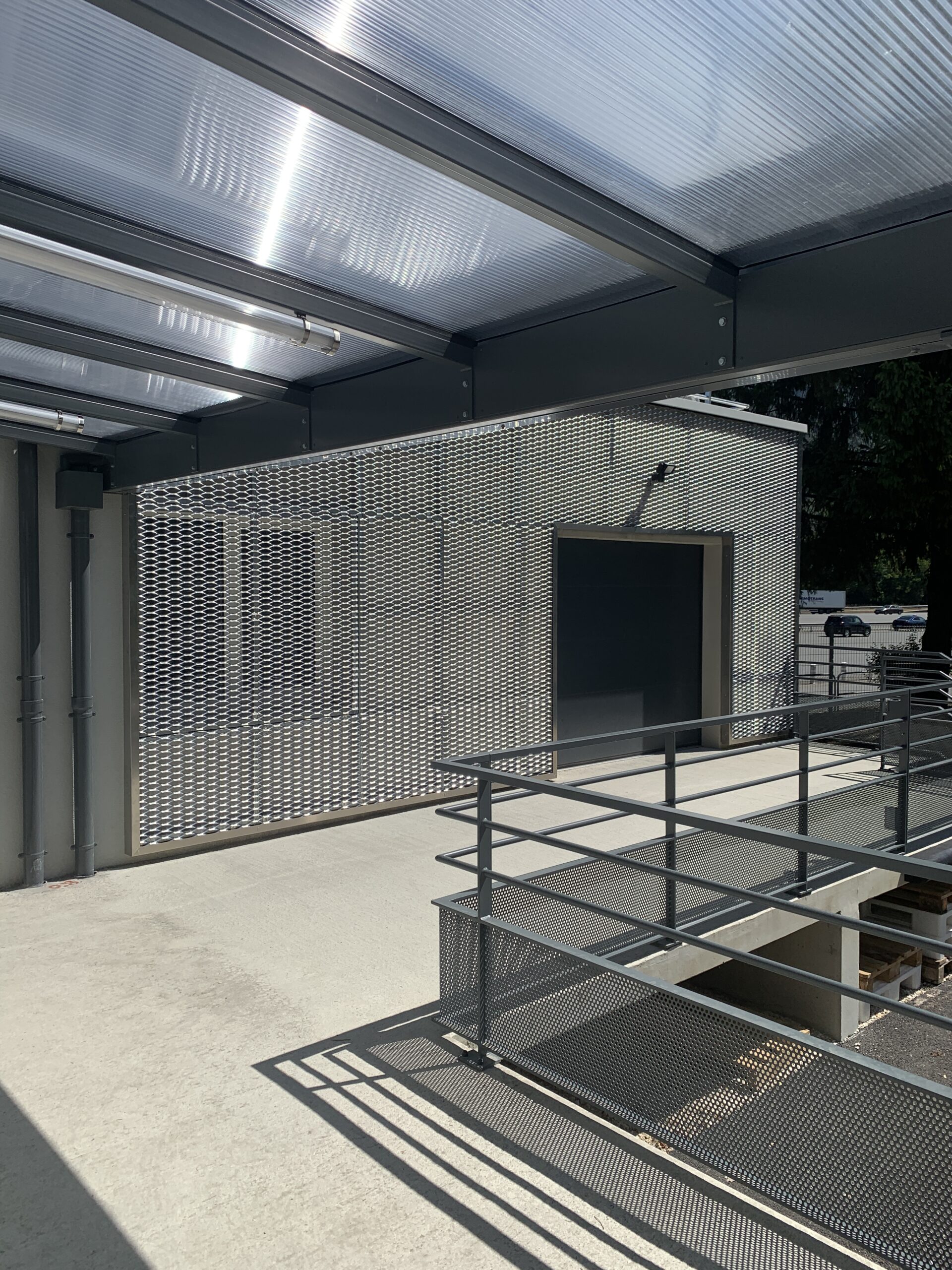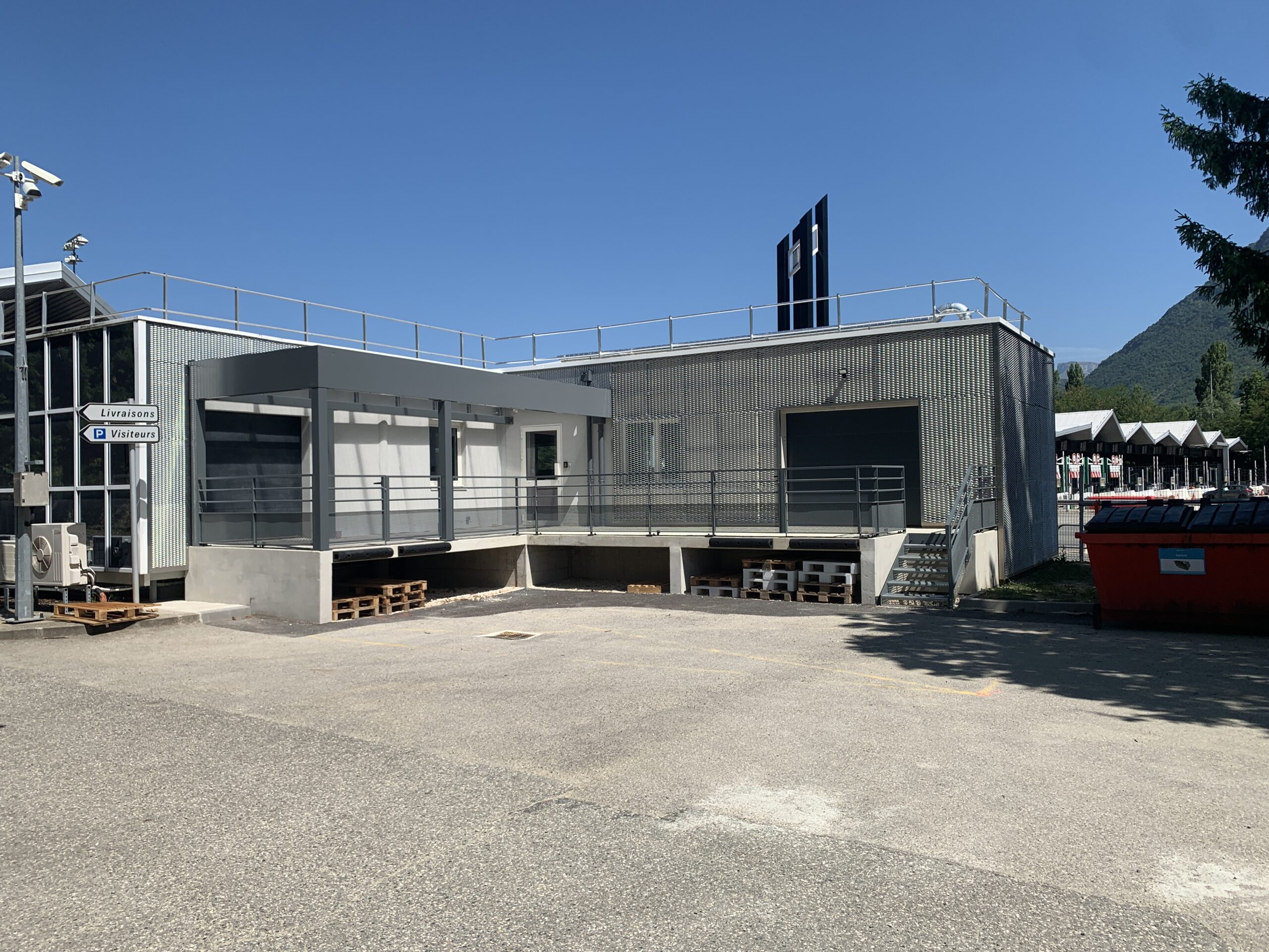 Les volumes sont lisibles et clairement définis, complétés par la création d’un auvent protégeant les opérations logistiques extérieures et renforçant la fonctionnalité de l’ensemble.