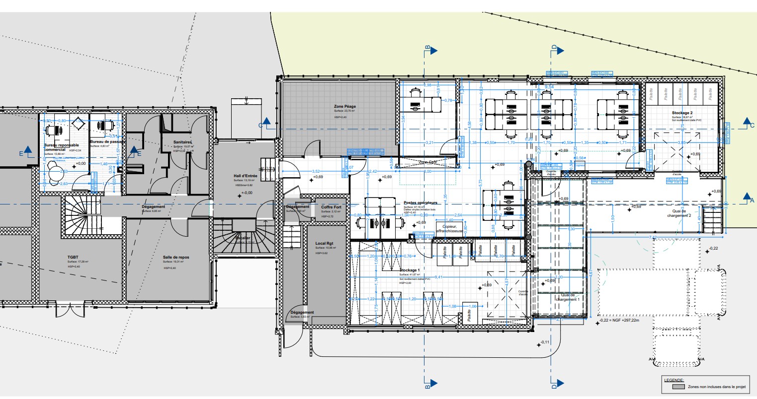Cette transformation a nécessité une analyse fine des circulations internes et des besoins en stockage, afin d’élaborer un aménagement rationnel et performant, adapté aux usages futurs et aux contraintes d’exploitation.