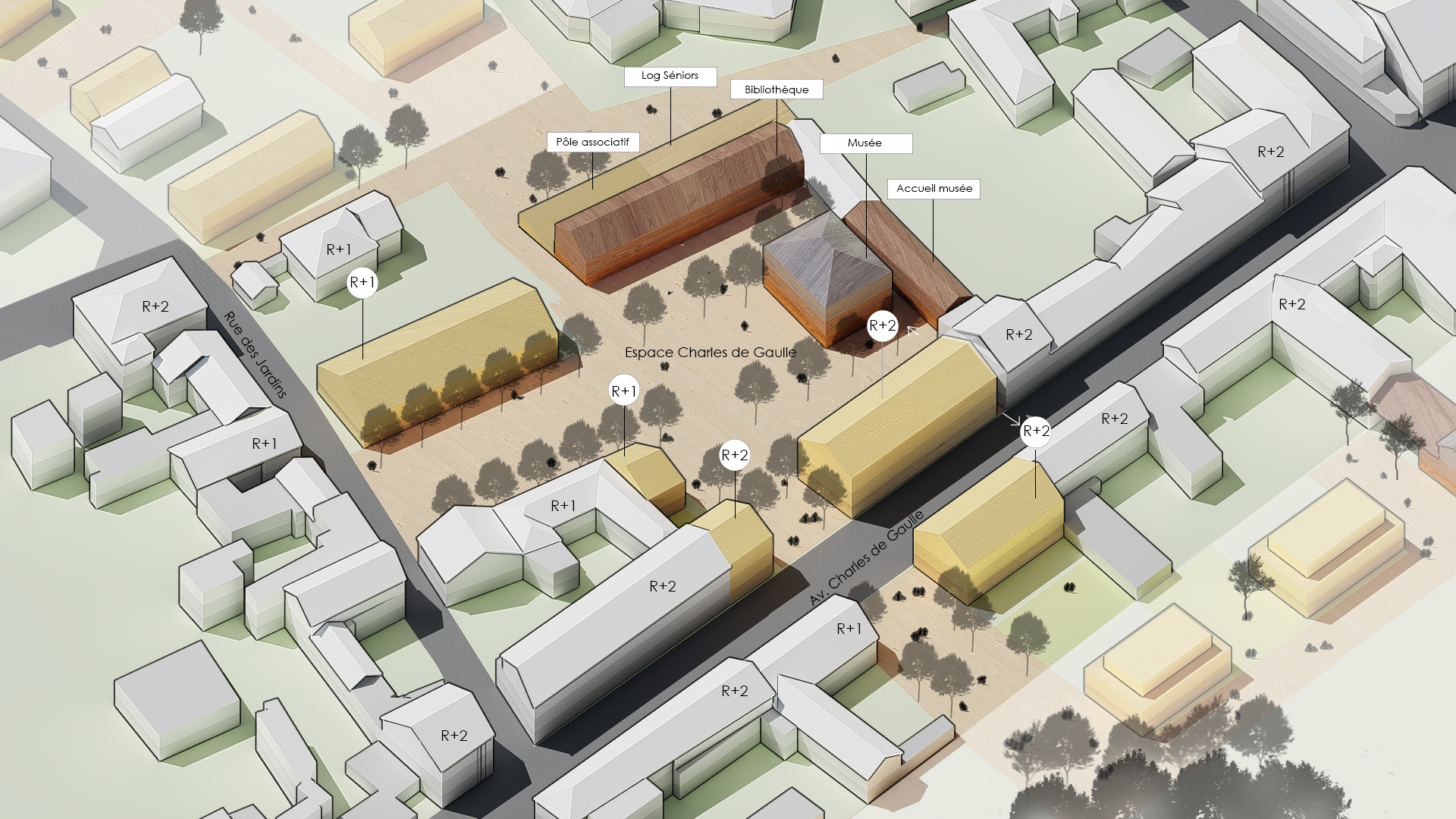 Elle s’inscrit dans une volonté de redonner dynamisme et attractivité à la commune, en articulant, dans une approche globale, la mise en valeur du patrimoine bâti, la reconfiguration des espaces publics et le renforcement de la présence végétale.